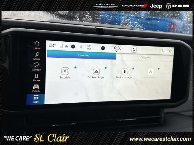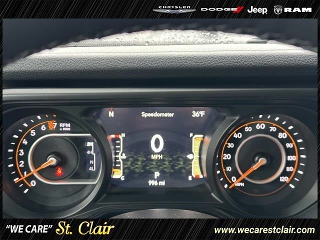 110 MPH Vehicle Max Speed Calibration, 12.3 Touchscreen Display, 3.73 Rear Axle Ratio, 4-Wheel Disc Brakes, 4G LTE Wi-Fi Hot Spot, 8 Speakers, ABS brakes, Advanced Brake Assist, Air Conditioning, Alexa Built-In, AM/FM radio: SiriusXM, Apple CarPlay, Apple CarPlay/Android Auto, Automatic Headlamps, Black 3-Piece Hard Top, Body Color Fender Flares (2-Piece), Brake assist, Cloth Low-Back Bucket Seats, Compass, Connectivity - US/Canada, Convenience Group, Corning Gorilla Glass, Dark Sky Appearance Package, Daytime Running Lamp System, Deep Tint Sunscreen Windows, Delay-off headlights, Driver door bin, Driver vanity mirror, Dual front impact airbags, Dual front side impact airbags, Electronic Stability Control, Emergency/Assistance Call, Enhanced Adaptive Cruise Control, Freedom Panel Storage Bag, Front anti-roll bar, Front Bucket Seats, Front Center Armrest w/Storage, Front Door Locks 2-Door Passive Entry, Front fog lights, Front reading lights, Full Speed Forward Collision Warning Plus, Google Android Auto, Heated Front Seats, Heated Steering Wheel, Illuminated entry, Integrated roll-over protection, Low tire pressure warning, Manufacturer's Statement of Origin, Mold In Color Bumper w/Gloss Black, MOPAR All-Weather Slush Mats, Normal Duty Plus Suspension, Normal Duty Suspension, Occupant sensing airbag, Outside temperature display, Overhead airbag, Panic alarm, ParkView Rear Back-Up Camera, Passenger door bin, Passenger vanity mirror, Performance Hood, Power Heated Mirrors, Power steering, Power windows, Premium Wrapped Steering Wheel, Quick Order Package 24S Sport S, Radio data system, Radio: Uconnect 5 w/12.3 Display, Rear anti-roll bar, Rear reading lights, Rear Sliding Window, Rear Window Defroster, Remote keyless entry, Remote Start System, Security Alarm, Speed control, Split folding rear seat, Steering wheel mounted audio controls, Sun Visors w/Illuminated Vanity Mirrors, Tachometer, Telescoping steering wheel, Tilt steering wheel, Traction control, Trip computer, Universal Garage Door Opener, USB Host Flip, Variably intermittent wipers, Voltmeter, Wheels: 17 x 7.5 Black Steel Styled, Wheels: 17 x 7.5 Gray.
