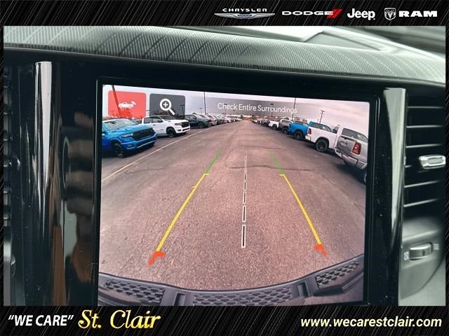 115V Auxiliary Power Outlet, 2nd Row In Floor Storage Bins, 3 Rear Seat Head Restraints, 4 Way Front Headrests, 4-Wheel Disc Brakes, 400W Inverter, 4G LTE Wi-Fi Hot Spot, 6 Speakers, ABS brakes, Accent Color Door Handles, Accent Color Premium Power Mirrors, Accent Color Tailgate Handle, Air Conditioning, Alloy wheels, AM/FM radio, Anti-Spin Differential Rear Axle, Apple CarPlay/Android Auto, Auto High-beam Headlights, Auto Power-Folding Mirrors, Auto-Dimming Exterior Driver Mirror, Auto-Dimming Rear-View Mirror, Big Horn Badge, Big Horn Level 1 Equipment Group, Black Exterior Mirrors, Black Exterior Truck Badging, Black Headlamp Bezels, Black Interior Accents, Black Painted Exterior Mirrors Caps, Black Premium Power Mirrors, Black Tail Lamp Bezels, Body Color Front Bumper, Body Color Rear Bumper w/Step Pads, Brake assist, Bucket Seats, Bumpers: chrome, Cloth Bench Seat, Compass, Connectivity - US/Canada, Convex Wide-Angle Exterior Mirror Insert, Delay-off headlights, Deluxe Cloth Bucket Seats, Driver door bin, Dual front impact airbags, Dual front side impact airbags, Electronic Stability Control, Exterior Mirrors Courtesy Lamps, Exterior Mirrors w/Heating Element, Exterior Mirrors w/Supplemental Signals, Front anti-roll bar, Front Center Armrest w/Storage, Front fog lights, Front reading lights, Front Seat Back Map Pockets, Front wheel independent suspension, Full Length Floor Console, Fully automatic headlights, Glove Box Lamp, GPS Antenna Input, Grille Black Surround Black Mesh, Heated door mirrors, Heated Front Seats, Heated Steering Wheel, Illuminated entry, Integrated Voice Command w/Bluetooth®, Leather Wrapped Steering Wheel, Low tire pressure warning, Manual Adjust 4-Way Front Passenger Seat, Manual Folding Exterior Mirrors, Manufacturer's Statement of Origin, Night Edition, Occupant sensing airbag, Outside temperature display, Overhead airbag, Overhead console, Panic alarm, ParkView Rear Back-Up Camera, Passenger door bin, Passenger vanity mirror, Power 2-Way Driver Lumbar Adjust, Power Adjust 8-Way Driver Seat, Power Adjustable Pedals, Power door mirrors, Power steering, Power windows, Quick Order Package 23Z Big Horn, Radio data system, Radio: Uconnect 5 W w/8.4 Display, RAM Grille Badge - Black, RAM Grille Badge - Chrome, Rear 60/40 Folding Seat, Rear anti-roll bar, Rear Center Armrest, Rear Power Sliding Window, Rear seat center armrest, Rear step bumper, Rear Window Defroster, Remote keyless entry, Speed control, Split folding rear seat, Steering Wheel Mounted Audio Controls, Sun Visors w/Illuminated Vanity Mirrors, Supplier Part Tracking (J-1), Tachometer, Telescoping steering wheel, Tilt steering wheel, Traction control, Trip computer, Universal Garage Door Opener, USB Host Flip, Variably intermittent wipers, Voltmeter, Wheels: 18 x 8 Cast-Aluminum Painted, Wheels: 20 x 9.0 Aluminum Painted Clad.