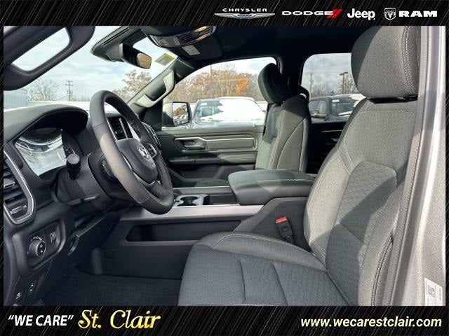 115V Auxiliary Power Outlet, 2nd Row In Floor Storage Bins, 3 Rear Seat Head Restraints, 4 Way Front Headrests, 4-Wheel Disc Brakes, 400W Inverter, 4G LTE Wi-Fi Hot Spot, 6 Speakers, ABS brakes, Accent Color Door Handles, Accent Color Premium Power Mirrors, Accent Color Tailgate Handle, Air Conditioning, Alloy wheels, AM/FM radio, Anti-Spin Differential Rear Axle, Apple CarPlay/Android Auto, Auto High-beam Headlights, Auto Power-Folding Mirrors, Auto-Dimming Exterior Driver Mirror, Auto-Dimming Rear-View Mirror, Big Horn Badge, Big Horn Level 1 Equipment Group, Black Exterior Mirrors, Black Exterior Truck Badging, Black Headlamp Bezels, Black Interior Accents, Black Painted Exterior Mirrors Caps, Black Premium Power Mirrors, Black Tail Lamp Bezels, Body Color Front Bumper, Body Color Rear Bumper w/Step Pads, Brake assist, Bucket Seats, Bumpers: chrome, Cloth Bench Seat, Compass, Connectivity - US/Canada, Convex Wide-Angle Exterior Mirror Insert, Delay-off headlights, Deluxe Cloth Bucket Seats, Driver door bin, Dual front impact airbags, Dual front side impact airbags, Electronic Stability Control, Exterior Mirrors Courtesy Lamps, Exterior Mirrors w/Heating Element, Exterior Mirrors w/Supplemental Signals, Front anti-roll bar, Front Center Armrest w/Storage, Front fog lights, Front reading lights, Front Seat Back Map Pockets, Front wheel independent suspension, Full Length Floor Console, Fully automatic headlights, Glove Box Lamp, GPS Antenna Input, Grille Black Surround Black Mesh, Heated door mirrors, Heated Front Seats, Heated Steering Wheel, Illuminated entry, Integrated Voice Command w/Bluetooth®, Leather Wrapped Steering Wheel, Low tire pressure warning, Manual Adjust 4-Way Front Passenger Seat, Manual Folding Exterior Mirrors, Manufacturer's Statement of Origin, Night Edition, Occupant sensing airbag, Outside temperature display, Overhead airbag, Overhead console, Panic alarm, ParkView Rear Back-Up Camera, Passenger door bin, Passenger vanity mirror, Power 2-Way Driver Lumbar Adjust, Power Adjust 8-Way Driver Seat, Power Adjustable Pedals, Power door mirrors, Power steering, Power windows, Quick Order Package 23Z Big Horn, Radio data system, Radio: Uconnect 5 W w/8.4 Display, RAM Grille Badge - Black, RAM Grille Badge - Chrome, Rear 60/40 Folding Seat, Rear anti-roll bar, Rear Center Armrest, Rear Power Sliding Window, Rear seat center armrest, Rear step bumper, Rear Window Defroster, Remote keyless entry, Speed control, Split folding rear seat, Steering Wheel Mounted Audio Controls, Sun Visors w/Illuminated Vanity Mirrors, Supplier Part Tracking (J-1), Tachometer, Telescoping steering wheel, Tilt steering wheel, Traction control, Trip computer, Universal Garage Door Opener, USB Host Flip, Variably intermittent wipers, Voltmeter, Wheels: 18 x 8 Cast-Aluminum Painted, Wheels: 20 x 9.0 Aluminum Painted Clad.
