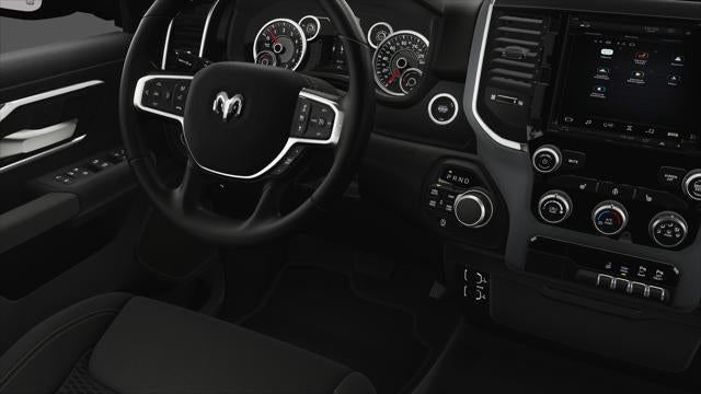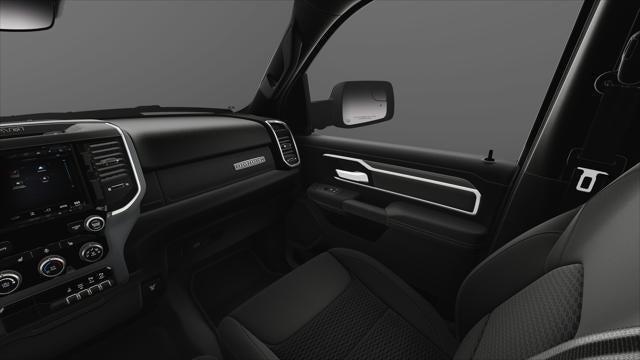 115V Auxiliary Power Outlet, 2nd Row In Floor Storage Bins, 3 Rear Seat Head Restraints, 4 Way Front Headrests, 4-Wheel Disc Brakes, 400W Inverter, 4G LTE Wi-Fi Hot Spot, 6 Speakers, ABS brakes, Accent Color Door Handles, Accent Color Premium Power Mirrors, Accent Color Tailgate Handle, Air Conditioning, Alloy wheels, AM/FM radio, Anti-Spin Differential Rear Axle, Apple CarPlay/Android Auto, Auto High-beam Headlights, Auto Power-Folding Mirrors, Auto-Dimming Exterior Driver Mirror, Auto-Dimming Rear-View Mirror, Big Horn Badge, Big Horn Level 1 Equipment Group, Black Exterior Mirrors, Black Exterior Truck Badging, Black Headlamp Bezels, Black Interior Accents, Black Painted Exterior Mirrors Caps, Black Premium Power Mirrors, Black Tail Lamp Bezels, Body Color Front Bumper, Body Color Rear Bumper w/Step Pads, Brake assist, Bucket Seats, Bumpers: chrome, Cloth Bench Seat, Compass, Connectivity - US/Canada, Convex Wide-Angle Exterior Mirror Insert, Delay-off headlights, Deluxe Cloth Bucket Seats, Driver door bin, Dual front impact airbags, Dual front side impact airbags, Electronic Stability Control, Exterior Mirrors Courtesy Lamps, Exterior Mirrors w/Heating Element, Exterior Mirrors w/Supplemental Signals, Front anti-roll bar, Front Center Armrest w/Storage, Front fog lights, Front reading lights, Front Seat Back Map Pockets, Front wheel independent suspension, Full Length Floor Console, Fully automatic headlights, Glove Box Lamp, GPS Antenna Input, Grille Black Surround Black Mesh, Heated door mirrors, Heated Front Seats, Heated Steering Wheel, Illuminated entry, Integrated Voice Command w/Bluetooth®, Leather Wrapped Steering Wheel, Low tire pressure warning, Manual Adjust 4-Way Front Passenger Seat, Manual Folding Exterior Mirrors, Manufacturer's Statement of Origin, Night Edition, Occupant sensing airbag, Outside temperature display, Overhead airbag, Overhead console, Panic alarm, ParkView Rear Back-Up Camera, Passenger door bin, Passenger vanity mirror, Power 2-Way Driver Lumbar Adjust, Power Adjust 8-Way Driver Seat, Power Adjustable Pedals, Power door mirrors, Power steering, Power windows, Quick Order Package 23Z Big Horn, Radio data system, Radio: Uconnect 5 W w/8.4 Display, RAM Grille Badge - Black, RAM Grille Badge - Chrome, Rear 60/40 Folding Seat, Rear anti-roll bar, Rear Center Armrest, Rear Power Sliding Window, Rear seat center armrest, Rear step bumper, Rear Window Defroster, Remote keyless entry, Speed control, Split folding rear seat, Steering Wheel Mounted Audio Controls, Sun Visors w/Illuminated Vanity Mirrors, Supplier Part Tracking (J-1), Tachometer, Telescoping steering wheel, Tilt steering wheel, Traction control, Trip computer, Universal Garage Door Opener, USB Host Flip, Variably intermittent wipers, Voltmeter, Wheels: 18 x 8 Cast-Aluminum Painted, Wheels: 20 x 9.0 Aluminum Painted Clad.