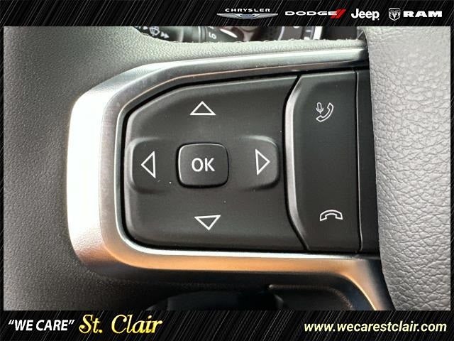 115V Auxiliary Power Outlet, 2nd Row In Floor Storage Bins, 3 Rear Seat Head Restraints, 4 Way Front Headrests, 4-Wheel Disc Brakes, 400W Inverter, 4G LTE Wi-Fi Hot Spot, 6 Speakers, ABS brakes, Accent Color Door Handles, Accent Color Premium Power Mirrors, Accent Color Tailgate Handle, Air Conditioning, Alloy wheels, AM/FM radio, Anti-Spin Differential Rear Axle, Apple CarPlay/Android Auto, Auto High-beam Headlights, Auto Power-Folding Mirrors, Auto-Dimming Exterior Driver Mirror, Auto-Dimming Rear-View Mirror, Big Horn Badge, Big Horn Level 1 Equipment Group, Black Exterior Mirrors, Black Exterior Truck Badging, Black Headlamp Bezels, Black Interior Accents, Black Painted Exterior Mirrors Caps, Black Premium Power Mirrors, Black Tail Lamp Bezels, Body Color Front Bumper, Body Color Rear Bumper w/Step Pads, Brake assist, Bucket Seats, Bumpers: chrome, Cloth Bench Seat, Compass, Connectivity - US/Canada, Convex Wide-Angle Exterior Mirror Insert, Delay-off headlights, Deluxe Cloth Bucket Seats, Driver door bin, Dual front impact airbags, Dual front side impact airbags, Electronic Stability Control, Exterior Mirrors Courtesy Lamps, Exterior Mirrors w/Heating Element, Exterior Mirrors w/Supplemental Signals, Front anti-roll bar, Front Center Armrest w/Storage, Front fog lights, Front reading lights, Front Seat Back Map Pockets, Front wheel independent suspension, Full Length Floor Console, Fully automatic headlights, Glove Box Lamp, GPS Antenna Input, Grille Black Surround Black Mesh, Heated door mirrors, Heated Front Seats, Heated Steering Wheel, Illuminated entry, Integrated Voice Command w/Bluetooth®, Leather Wrapped Steering Wheel, Low tire pressure warning, Manual Adjust 4-Way Front Passenger Seat, Manual Folding Exterior Mirrors, Manufacturer's Statement of Origin, Night Edition, Occupant sensing airbag, Outside temperature display, Overhead airbag, Overhead console, Panic alarm, ParkView Rear Back-Up Camera, Passenger door bin, Passenger vanity mirror, Power 2-Way Driver Lumbar Adjust, Power Adjust 8-Way Driver Seat, Power Adjustable Pedals, Power door mirrors, Power steering, Power windows, Quick Order Package 23Z Big Horn, Radio data system, Radio: Uconnect 5 W w/8.4 Display, RAM Grille Badge - Black, RAM Grille Badge - Chrome, Rear 60/40 Folding Seat, Rear anti-roll bar, Rear Center Armrest, Rear Power Sliding Window, Rear seat center armrest, Rear step bumper, Rear Window Defroster, Remote keyless entry, Speed control, Split folding rear seat, Steering Wheel Mounted Audio Controls, Sun Visors w/Illuminated Vanity Mirrors, Supplier Part Tracking (J-1), Tachometer, Telescoping steering wheel, Tilt steering wheel, Traction control, Trip computer, Universal Garage Door Opener, USB Host Flip, Variably intermittent wipers, Voltmeter, Wheels: 18 x 8 Cast-Aluminum Painted, Wheels: 20 x 9.0 Aluminum Painted Clad.