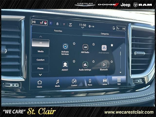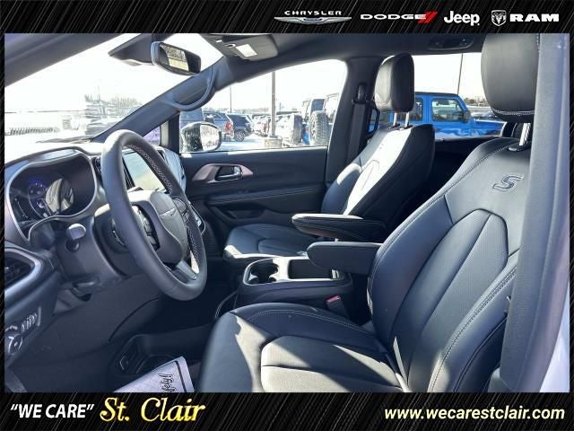 10.1 Touchscreen Display, 17 x 7.0 Aluminum Wheels, 3.25 Axle Ratio, 3rd row seats: split-bench, 4-Wheel Disc Brakes, 4G LTE Wi-Fi Hot Spot, 6 Speakers, ABS brakes, Air Conditioning, Alloy wheels, AM/FM radio: SiriusXM, Anodized Ink Badging, Apple CarPlay, Apple CarPlay/Android Auto, Auto-dimming Rear-View mirror, Automatic temperature control, Black Day Light Opening Moldings, Black Seats, Black Stow 'N Place Roof Rack, Brake assist, Bumpers: body-color, Caprice Leatherette Bucket Seats, Caprice Leatherette with S Logo, Compass, Connectivity - US/Canada, Delay-off headlights, Disassociated Touchscreen Display, Driver door bin, Driver vanity mirror, Driver's Seat Mounted Armrest, Dual front impact airbags, Dual front side impact airbags, Electronic Stability Control, Emergency communication system: Chrysler Connect, For Details, Visit DriveUconnect.com, Four wheel independent suspension, Front anti-roll bar, Front Bucket Seats, Front dual zone A/C, Front fog lights, Front reading lights, Fully automatic headlights, Garage door transmitter, Google Android Auto, GPS Antenna Input, Heated door mirrors, Heated front seats, Heated steering wheel, Illuminated entry, Integrated Active Noise Cancellation, Integrated Center Stack Radio, Knee airbag, Low tire pressure warning, Memory seat, MyFlexCare Service Plan, Occupant sensing airbag, Outside temperature display, Overhead airbag, Overhead console, Panic alarm, ParkView Rear Back-Up Camera, Passenger door bin, Passenger seat mounted armrest, Passenger vanity mirror, Piano Black Interior Accents, Power door mirrors, Power driver seat, Power Liftgate, Power steering, Power windows, Premium Fascia Upper/Lower Grille with Black Surround, Premium Rear Fascia Black, Quick Order Package 27L, Radio data system, Radio: Uconnect 5 with 10.1 Display, Rain sensing wipers, Rear air conditioning, Rear reading lights, Rear window defroster, Rear window wiper, Reclining 3rd row seat, Remote keyless entry, S Appearance Package, S Badge, Security system, Speed control, Split folding rear seat, Spoiler, Steering wheel mounted audio controls, Tachometer, Telescoping steering wheel, Tilt steering wheel, Touring Suspension, Traction control, Trip computer, Turn signal indicator mirrors, USB Host Flip, Variably intermittent wipers, Voltmeter, Wheels: 20 x 7.5 S-Model Aluminum Design 1.