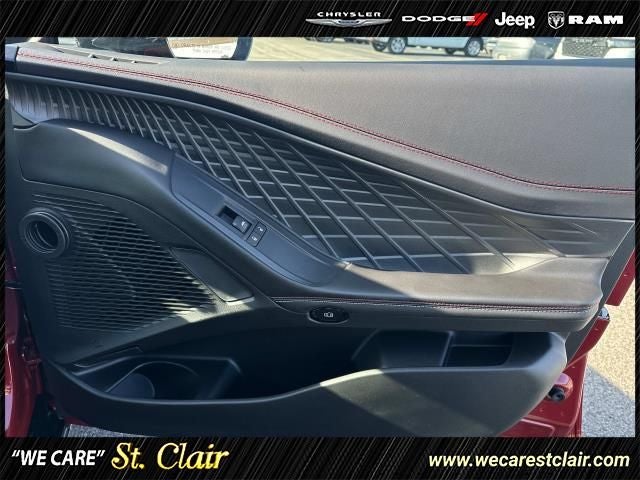 12.3 Touchscreen Display, 18 x 8.5 Aluminum Wheels, 2-Way Manual Adjust Front Head Restraints, 2-Way Power Driver Lumbar Adjust, 4-Way Manual Adjust Front Passenger Seat, 4-Wheel Disc Brakes, 4G LTE Wi-Fi Hot Spot, 6 Speakers, 8-Way Power Driver Seat Adjust, 9 Speaker Alpine Audio with Subwoofer, ABS brakes, Active Noise Control System, Air Conditioning, Alloy wheels, AM/FM radio: SiriusXM w/360L, Apple CarPlay/Android Auto, Auto-Dimming Rear-View Mirror, Automatic temperature control, Black Seats, Blacktop Package, Brake assist, Bumpers: body-color, Cloth Sport Seats, Compass, Connectivity - US/Canada, Dark Exterior Badging, Delay-off headlights, Disassociated Touchscreen Display, Driver Convenience Group, Driver door bin, Driver vanity mirror, Dual front impact airbags, Dual front side impact airbags, Dual Rear Exhaust with Black Tips, Electronic Stability Control, Emergency communication system: Dodge Connect, Four wheel independent suspension, Front anti-roll bar, Front Bucket Seats, Front Center Armrest, Front dual zone A/C, Front reading lights, Fully automatic headlights, Heated door mirrors, Heated Exterior Mirrors, Heated Front Seats, Heated Steering Wheel, Illuminated entry, Integrated Center Stack Radio, Knee airbag, Leather Shift Knob, Leatherette/Cloth Performance Seats, Low Back Bucket Seats, Low tire pressure warning, Manufacturer's Statement of Origin, MyFlexCare Service Plan, Occupant sensing airbag, Outside temperature display, Overhead airbag, Overhead console, Panic alarm, ParkSense Front and Rear Park Assist with Stop, ParkView Rear Back-Up Camera, Passenger door bin, Passenger vanity mirror, Performance Shift Indicator, Power Adjust Mirrors, Power door mirrors, Power steering, Power windows, Quick Order Package 21L R/T, Radio data system, Radio: Uconnect 5 with 12.3 Display, Rear anti-roll bar, Rear Hatch Cargo Cover, Rear reading lights, Rear seat center armrest, Rear window defroster, Remote keyless entry, Security system, Side Distance Warning, Speed control, Split folding rear seat, Sport steering wheel, Sport Suspension, Steering Wheel Mount Paddle Shifters, Steering wheel mounted audio controls, Tachometer, Telescoping steering wheel, Tilt steering wheel, Traction control, Trip computer, Two Tone Paint Group, Universal Garage Door Opener, Variably intermittent wipers, Wheels: 20 x 9 Black Aluminum, Wireless Apple CarPlay, Wireless Google Android Auto.