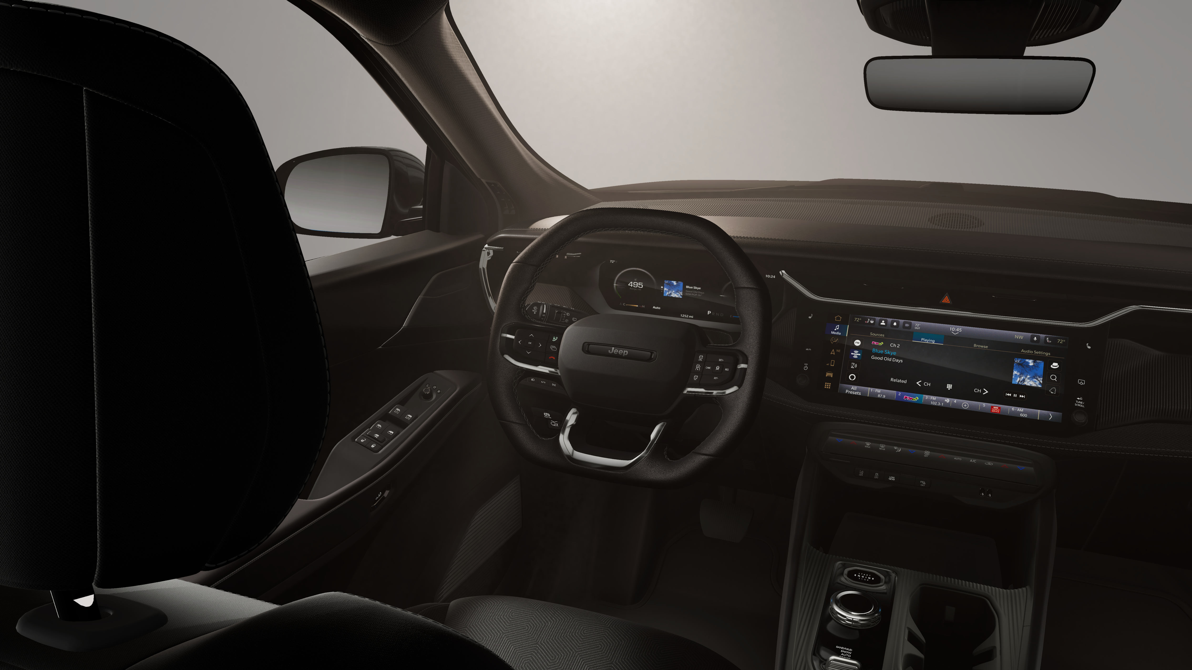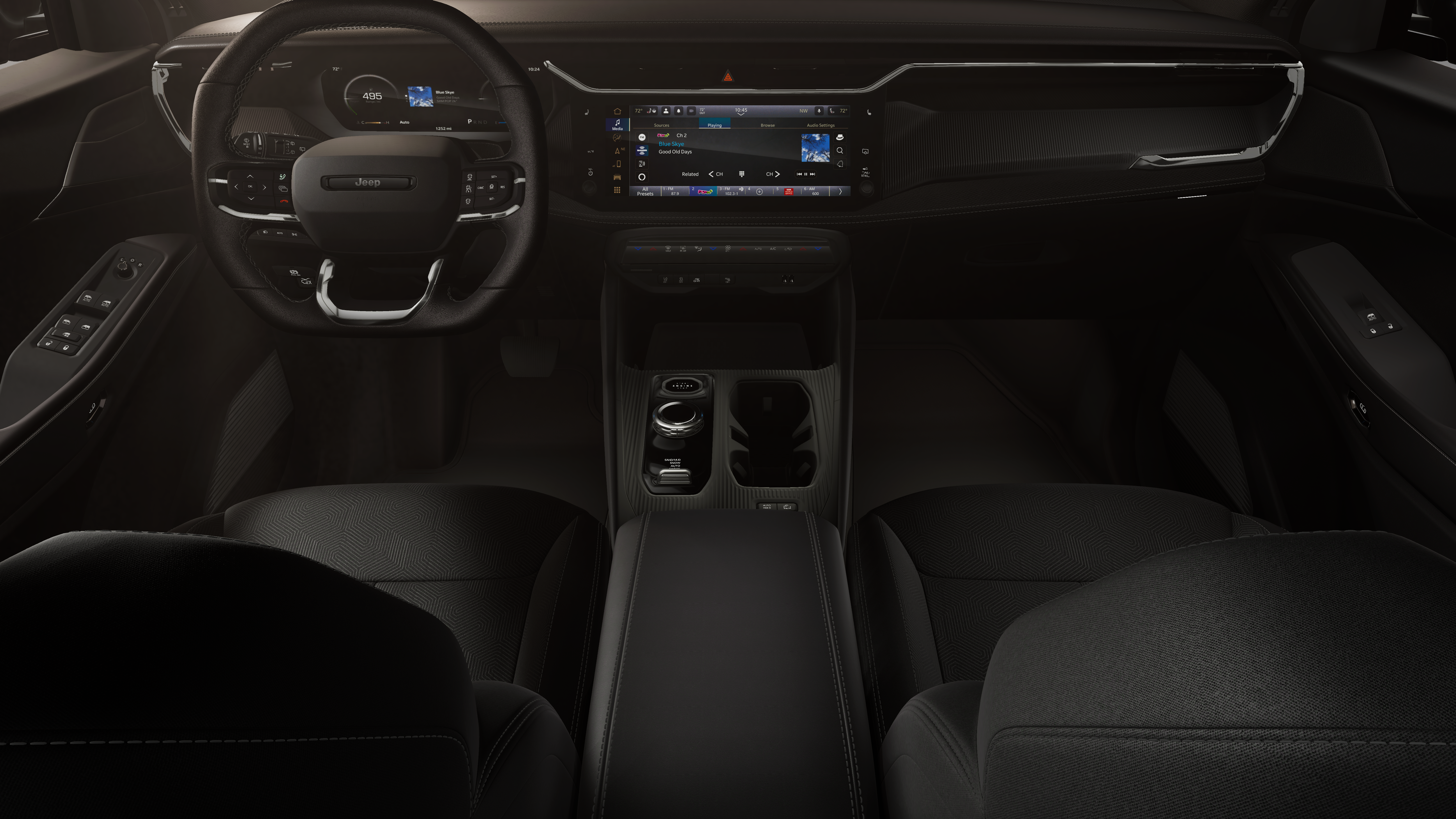 4-Wheel Disc Brakes, 4.16 Final Drive Ratio, 4G LTE Wi-Fi Hot Spot, 6 Speakers, ABS brakes, Air Conditioning, Alloy wheels, AM/FM radio: SiriusXM with 360L, Apple CarPlay, Apple CarPlay/Android Auto, Auto High-beam Headlights, Automatic temperature control, Brake assist, Compass, Delay-off headlights, Driver door bin, Driver vanity mirror, Dual front impact airbags, Dual front side impact airbags, Electronic Stability Control, Emergency communication system, Four wheel independent suspension, Front anti-roll bar, Front Bucket Seats, Front Center Armrest, Front dual zone A/C, Front fog lights, Front reading lights, Fully automatic headlights, Global Telematics Box Module (TBM), Gloss Black Mirrors, Google Android Auto, Heated door mirrors, Heated Exterior Mirrors, Heated front seats, Illuminated entry, Knee airbag, Low tire pressure warning, Occupant sensing airbag, Outside temperature display, Overhead airbag, Overhead console, Panic alarm, ParkView Rear Back-Up Camera, Passenger door bin, Passenger vanity mirror, Power door mirrors, Power driver seat, Power Liftgate, Power steering, Power windows, Radio data system, Radio: Uconnect 5 with 12.3 Display, Rain sensing wipers, Rear anti-roll bar, Rear reading lights, Rear seat center armrest, Rear side impact airbag, Rear window defroster, Rear window wiper, Remote keyless entry, SiriusXM with 360L, Soul Cloth Seats with Labyrinth Embossing, Speed control, Speed-sensing steering, Split folding rear seat, Spoiler, Steering wheel mounted audio controls, Tachometer, Telescoping steering wheel, Tilt steering wheel, Traction control, Trip computer, US/Canada Connectivity, Variably intermittent wipers, Voltmeter, Wheels: 18 x 7 Machine Face Painted Aluminum.