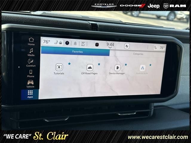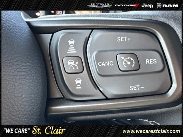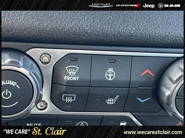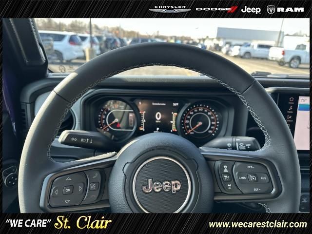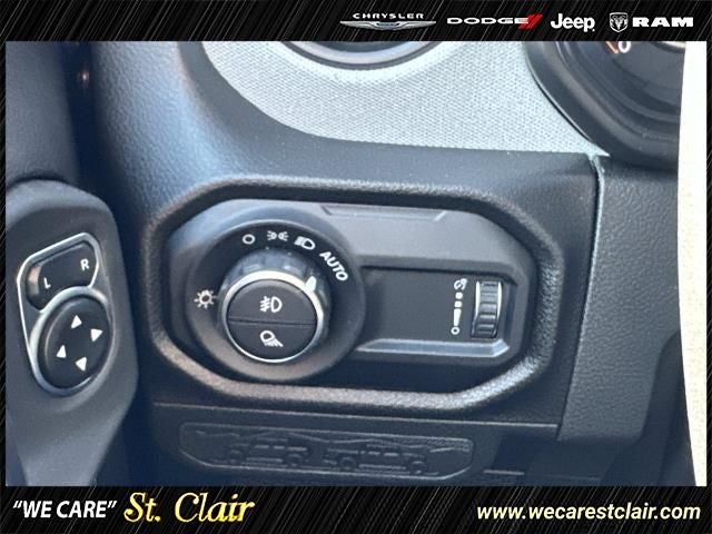 110 Mph Vehicle Max Speed Calibration, 12.3 Touchscreen Display, 2-Piece Body Color Fender Flares, 3.73 Rear Axle Ratio, 4-Wheel Disc Brakes, 4-Wheel Drive Decal, 4G LTE Wi-Fi Hot Spot, 8 Speakers, ABS brakes, Advanced Brake Assist, Air Conditioning, Air Conditioning with Auto Temp Control, Alexa Built-in, AM/FM radio: SiriusXM with 360L, Apple CarPlay, Apple CarPlay/Android Auto, Automatic Headlamps, Auxiliary Switches, Black 3-Piece Hard Top, Black Grille with Gloss Black Rings, Brake assist, Class IV Receiver Hitch, Cluster 7.0 TFT Color Display, Compass, Connectivity - US/Canada, Convenience Group, Corning Gorilla Glass, Daytime Running Lamp System, Daytime Running Lamps LED Accents, Deep Tint Sunscreen Windows, Delay-off headlights, Driver door bin, Driver vanity mirror, Dual front impact airbags, Dual front side impact airbags, E-Locker Rear Axle, Electronic Stability Control, Emergency/Assistance Call, For Details, Visit DriveUconnect.com, Freedom Panel Storage Bag, Front anti-roll bar, Front Bucket Seats, Front Center Armrest w/Storage, Front Door Locks 2-Door Passive Entry, Front fog lights, Front Heavy Duty Red Accent Shock Absorbers, Front LED Fog Lamps, Front reading lights, Full Speed Forward Collision Warning Plus, Google Android Auto, Heated Front Seats, Heated Steering Wheel, Heavy-Duty Engine Cooling, Illuminated entry, Increased Travel Export Tuned Suspension, Integrated Center Stack Radio, Integrated roll-over protection, LED Premium Reflector Headlamps, LED Taillamps, Low tire pressure warning, Manufacturer's Statement of Origin, Mold in Color Bumper with Gloss Black, MOPAR All-Weather Slush Mats, MOPAR Spray in Bedliner, MyFlexCare Service Plan, Normal Duty Suspension, Occupant sensing airbag, Off-Road Plus Mode, Outside temperature display, Overhead airbag, Panic alarm, ParkView Rear Back-Up Camera, Passenger door bin, Passenger vanity mirror, Power Heated Mirrors, Power steering, Power windows, Premium Wrapped Steering Wheel, Protection Sill Rails, Quick Order Package 24W Willys, Radio data system, Radio: Uconnect 5 with 12.3 Display, Rear anti-roll bar, Rear Heavy Duty Red Accent Shock Absorbers, Rear reading lights, Rear Sliding Window, Rear Window Defroster, Remote keyless entry, Remote Start System, Security Alarm, SiriusXM Radio Service, SiriusXM with 360L, Speed control, Split folding rear seat, Steering wheel mounted audio controls, Sun Visors with Illuminated Vanity Mirrors, Tachometer, Telescoping steering wheel, Tilt steering wheel, Traction control, Trailer Hitch Zoom, Trip computer, Universal Garage Door Opener, USB Host Flip, Variably intermittent wipers, Voltmeter, Wheels: 17 x 7.5 Black Steel Styled, Wheels: 17 x 7.5 Painted Black, Willys Hood Decal.