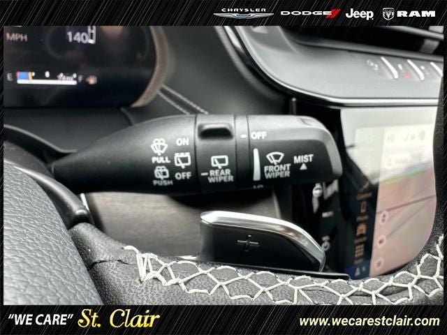 10 Speakers, 3.70 Rear Axle Ratio, 4-Wheel Disc Brakes, 4G LTE Wi-Fi Hot Spot, ABS brakes, Active Noise Control System, Air Conditioning, Alloy wheels, AM/FM radio: SiriusXM with 360L, Anti-whiplash front head restraints, Apple CarPlay, AppLink/Apple CarPlay and Android Auto, Audio memory, Auto High-beam Headlights, Automatic temperature control, Auxiliary Battery, Brake assist, Bumpers: body-color, Capri Leatherette Seats, Compass, Connectivity - US/Canada, Delay-off headlights, Disassociated Touchscreen Display, Driver door bin, Driver vanity mirror, Dual front impact airbags, Dual front side impact airbags, Electronic Stability Control, Emergency communication system, For Details, Visit DriveUconnect.com, Four wheel independent suspension, Front anti-roll bar, Front Bucket Seats, Front Center Armrest w/Storage, Front dual zone A/C, Front fog lights, Front reading lights, Fully automatic headlights, Garage door transmitter, Global Telematics Box Module (TBM), Gloss Black Exterior Mirrors, Google Android Auto, GPS Antenna Input, Heated door mirrors, Heated Exterior Mirrors, Heated front seats, Heated rear seats, Heated steering wheel, Illuminated entry, Integrated Center Stack Radio, Integrated Voice Command with Bluetooth®, Knee airbag, Low tire pressure warning, Manual Folding Exterior Mirrors, Memory seat, MyFlexCare Service Plan, Navigation System, Normal Duty Suspension, Occupant sensing airbag, Outside temperature display, Overhead airbag, Overhead console, Panic alarm, ParkView Rear Back-Up Camera, Passenger door bin, Passenger vanity mirror, Power door mirrors, Power driver seat, Power Liftgate, Power passenger seat, Power steering, Power windows, Quick Order Package 2BE Limited, Radio data system, Radio: Uconnect 5 Nav with 12.3 Display, Rear anti-roll bar, Rear reading lights, Rear window defroster, Rear window wiper, Remote keyless entry, Security system, Speed control, Speed-Sensitive Wipers, Split folding rear seat, Spoiler, Steering wheel mounted audio controls, Tachometer, Telescoping steering wheel, Tilt steering wheel, Traction control, Trip computer, Turn signal indicator mirrors, USB Host Flip, Variably intermittent wipers, Voltmeter, Wheels: 18 x 8.0 Polished/Painted Aluminum, Wheels: 20 x 8.5 Machined/Painted Aluminum.