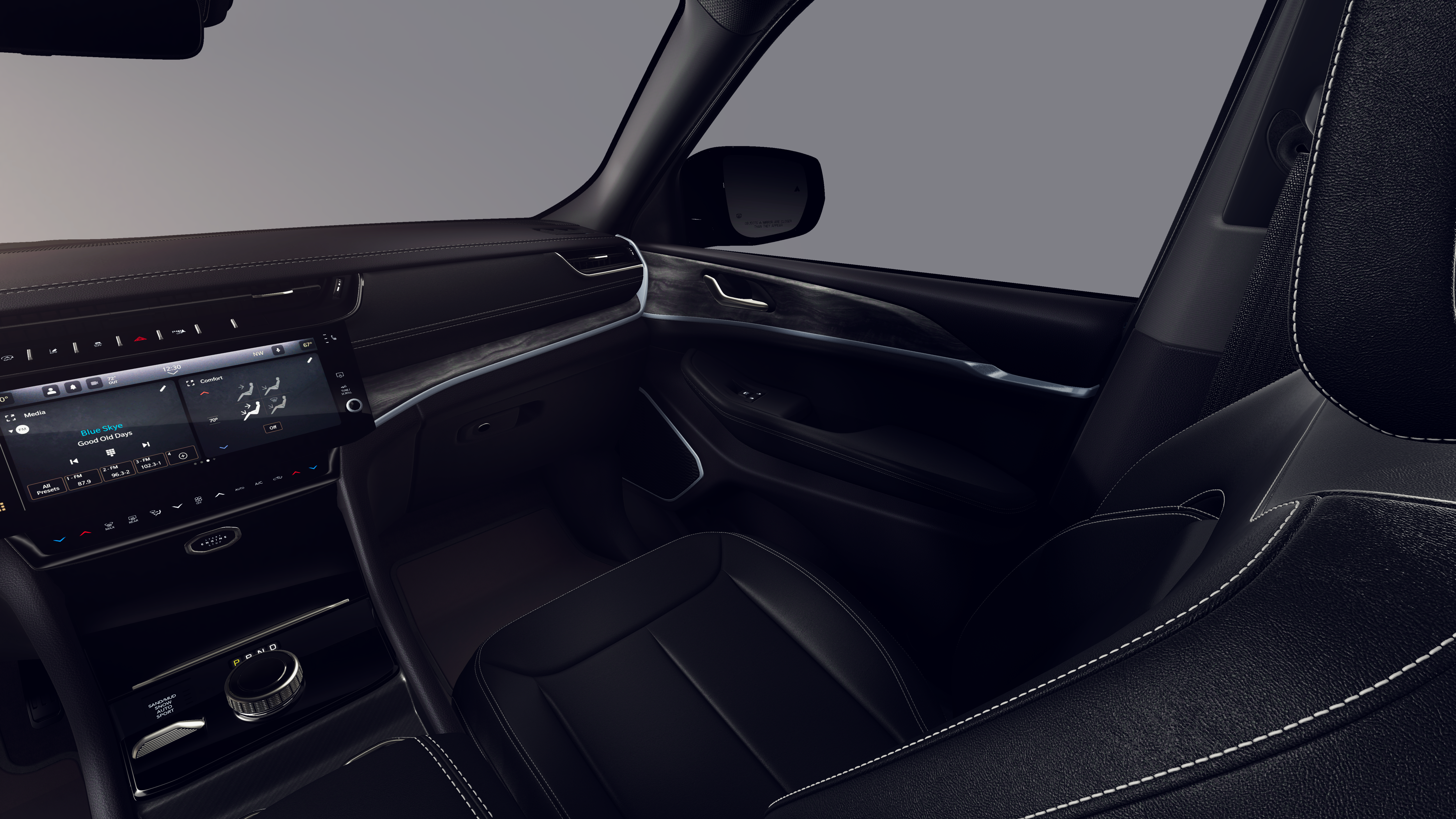 10 Speakers, 3.70 Rear Axle Ratio, 3rd row seats: split-bench, 4-Wheel Disc Brakes, 4G LTE Wi-Fi Hot Spot, ABS brakes, Active Noise Control System, Air Conditioning, Alloy wheels, AM/FM radio: SiriusXM with 360L, Anti-whiplash front head restraints, Apple CarPlay, AppLink/Apple CarPlay and Android Auto, Audio memory, Auto High-beam Headlights, Automatic temperature control, Brake assist, Bumpers: body-color, Capri Leatherette Seats, Compass, Connectivity - US/Canada, Delay-off headlights, Disassociated Touchscreen Display, Driver door bin, Driver vanity mirror, Dual front impact airbags, Dual front side impact airbags, Electronic Stability Control, Emergency communication system, For Details, Visit DriveUconnect.com, Four wheel independent suspension, Front anti-roll bar, Front Bucket Seats, Front Center Armrest w/Storage, Front dual zone A/C, Front fog lights, Front reading lights, Fully automatic headlights, Garage door transmitter, Global Telematics Box Module (TBM), Gloss Black Exterior Mirrors, Google Android Auto, GPS Antenna Input, Heated door mirrors, Heated Exterior Mirrors, Heated front seats, Heated rear seats, Heated steering wheel, Illuminated entry, Integrated Center Stack Radio, Integrated Voice Command with Bluetooth®, Knee airbag, Low tire pressure warning, Manual Fold Seatbacks, Manual Folding Exterior Mirrors, Memory seat, MyFlexCare Service Plan, Navigation System, Normal Duty Suspension, Occupant sensing airbag, Outside temperature display, Overhead airbag, Overhead console, Panic alarm, ParkView Rear Back-Up Camera, Passenger door bin, Passenger vanity mirror, Power door mirrors, Power driver seat, Power Fold Seatbacks, Power Liftgate, Power passenger seat, Power steering, Power windows, Quick Order Package 2BE Limited, Radio data system, Radio: Uconnect 5 Nav with 12.3 Display, Rear air conditioning, Rear anti-roll bar, Rear reading lights, Rear window defroster, Rear window wiper, Reclining 3rd row seat, Remote keyless entry, Security system, Speed control, Speed-Sensitive Wipers, Split folding rear seat, Spoiler, Steering wheel mounted audio controls, Tachometer, Telescoping steering wheel, Tilt steering wheel, Traction control, Trip computer, Turn signal indicator mirrors, USB Host Flip, Variably intermittent wipers, Voltmeter, Wheels: 18 x 8.0 Polished/Painted Aluminum, Wheels: 20 x 8.5 Machined/Painted Aluminum.