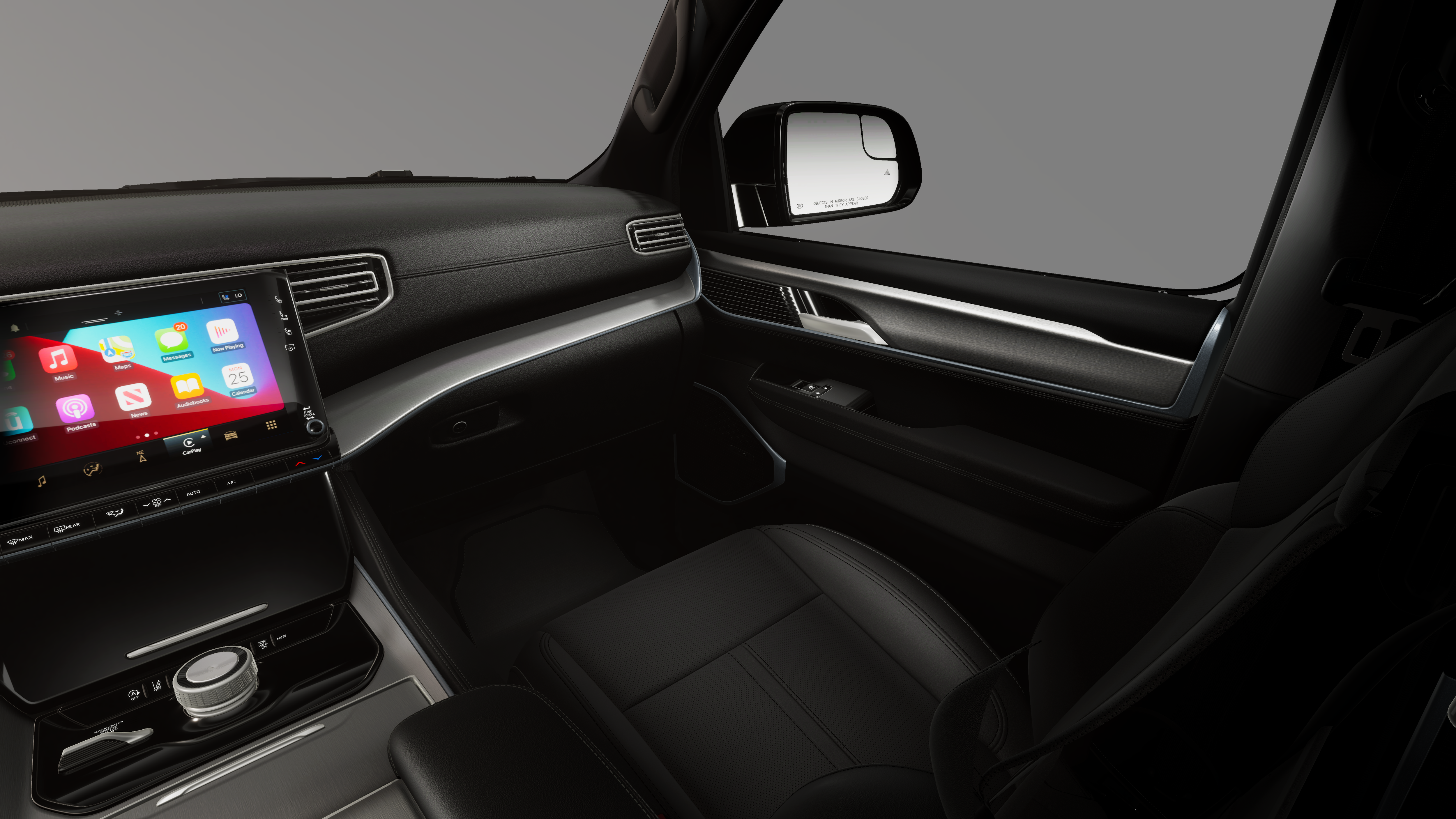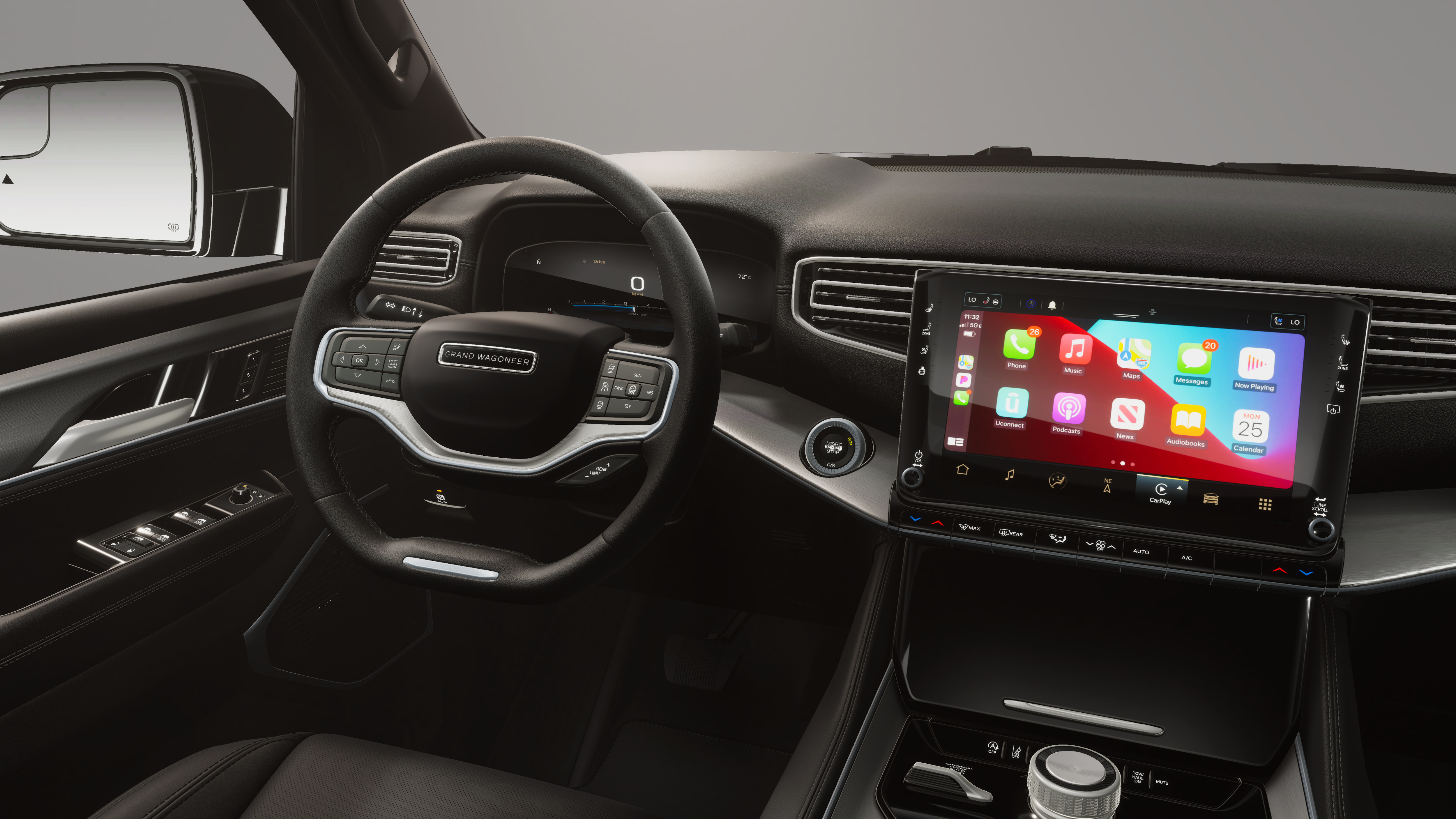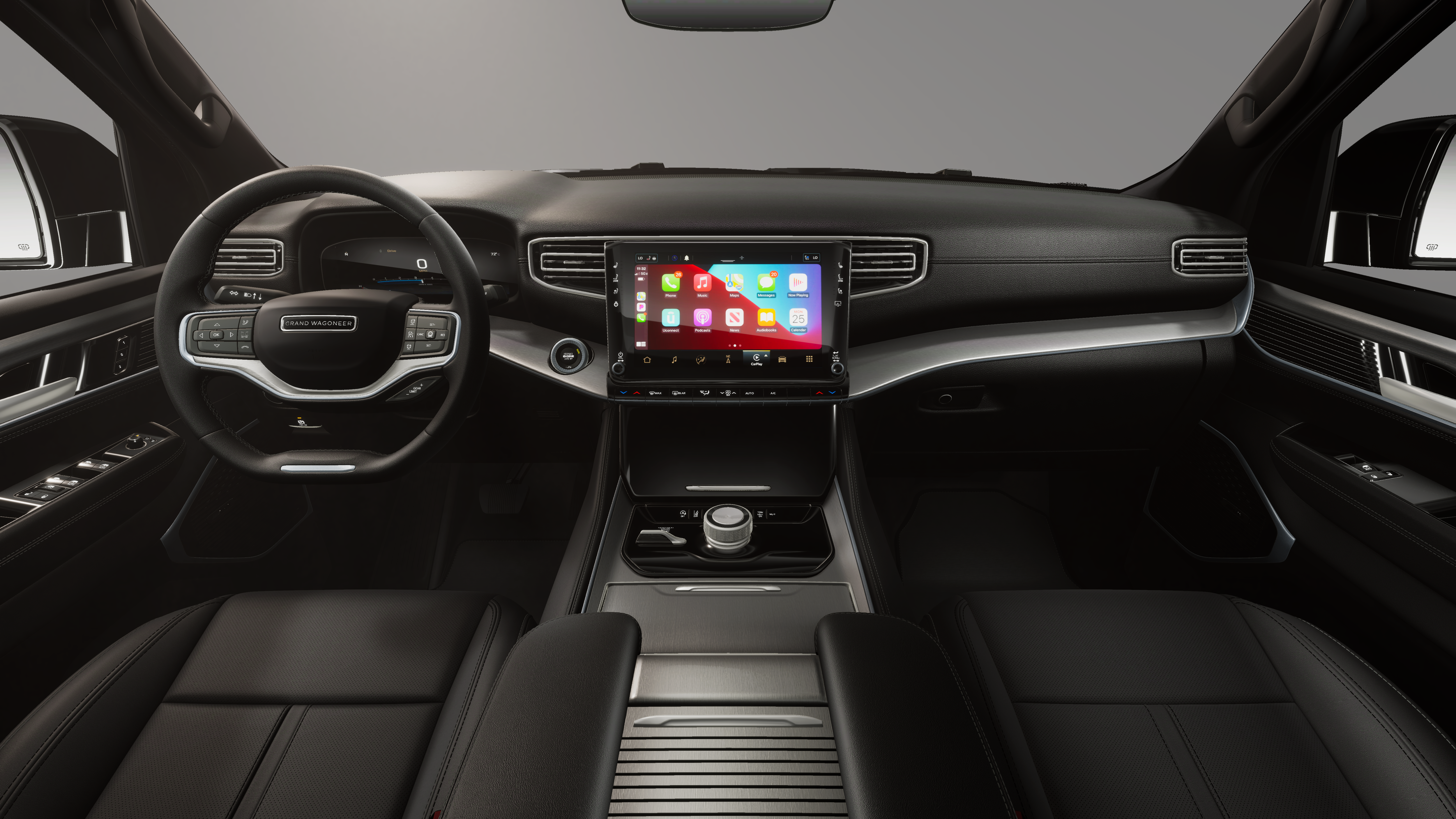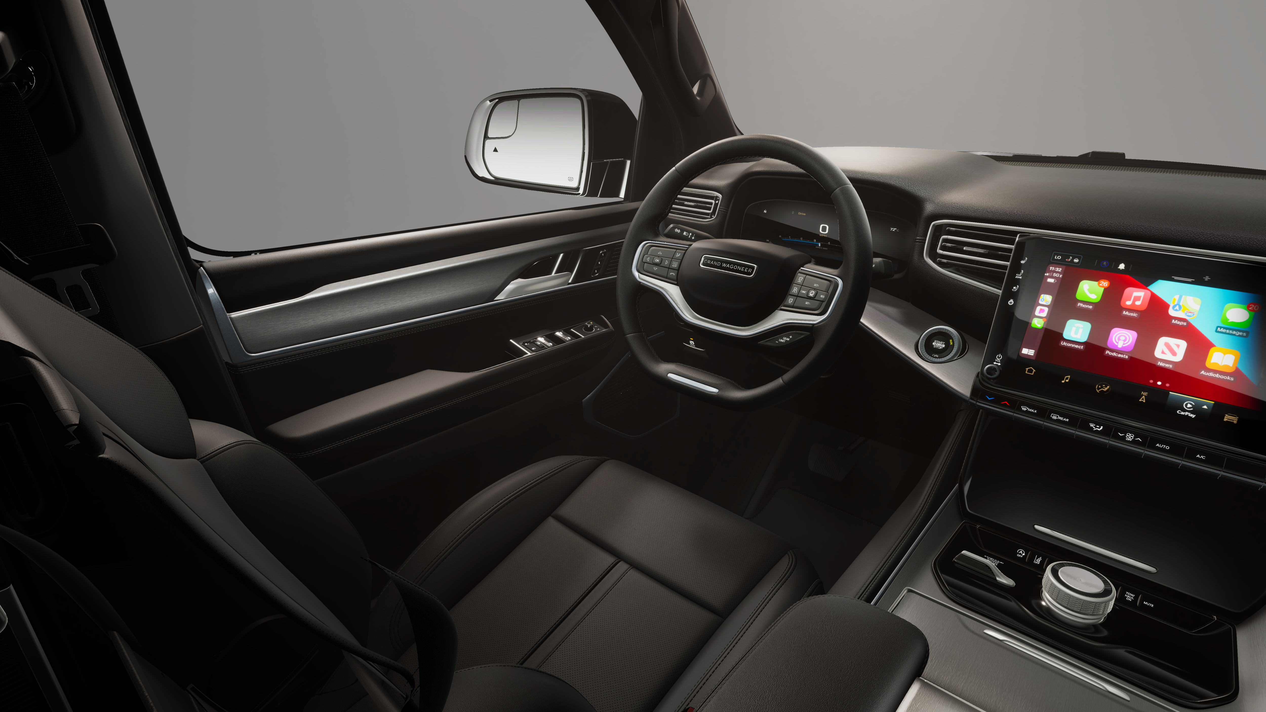 118 Mph Maximum Speed Calibration, 3.55 Rear Axle Ratio, 3rd row seats: bench, 4-Wheel Disc Brakes, 9 Speakers, ABS brakes, Air Conditioning, Alloy wheels, AM/FM radio: SiriusXM with 360L, Anti-whiplash front head restraints, Apple CarPlay/Android Auto, Audio memory, Auto Adjust in Reverse Exterior Mirrors, Auto High-beam Headlights, Auto-dimming door mirrors, Auto-Dimming Exterior Driver Mirror, Auto-dimming Rear-View mirror, Auto-leveling suspension, Automatic temperature control, Black Exterior Accents, Brake assist, Bumpers: body-color, Compass, Delay-off headlights, Driver door bin, Driver vanity mirror, Driver's Seat Mounted Armrest, Dual front impact airbags, Dual front side impact airbags, Electronic Stability Control, Emergency communication system: Jeep Connect, Exterior Mirrors Approach Lamps, Exterior Mirrors with Memory, Exterior Mirrors with Supplemental Signals, Exterior Parking Camera Rear, Four wheel independent suspension, Front anti-roll bar, Front Bucket Seats, Front Center Armrest w/Storage, Front dual zone A/C, Front fog lights, Front reading lights, Fully automatic headlights, Garage door transmitter, Heated door mirrors, Heated Exterior Mirrors, Heated front seats, Heated steering wheel, Illuminated entry, Knee airbag, Low tire pressure warning, Manufacturer Statement of Origin, Memory seat, MyFlexCare Service Plan, Navigation System, Normal Duty Suspension, Occupant sensing airbag, Outside temperature display, Overhead airbag, Overhead console, Panic alarm, Passenger door bin, Passenger seat mounted armrest, Passenger vanity mirror, Power door mirrors, Power driver seat, Power Liftgate, Power passenger seat, Power steering, Power windows, Quick Order Package 29E Grand Wagoneer, Radio data system, Radio: Uconnect 5 Nav with 12.0 Display, Rain sensing wipers, Rear air conditioning, Rear anti-roll bar, Rear reading lights, Rear seat center armrest, Rear window defroster, Rear window wiper, Reclining 3rd row seat, Remote keyless entry, Security system, Speed control, Speed-sensing steering, Speed-Sensitive Wipers, Split folding rear seat, Steering wheel memory, Steering wheel mounted audio controls, Tachometer, Telescoping steering wheel, Tilt steering wheel, Traction control, Trip computer, Turn signal indicator mirrors, Variably intermittent wipers, Ventilated front seats, Voltmeter, Wheels: 20 x 9 Machine Face Painted Aluminum.