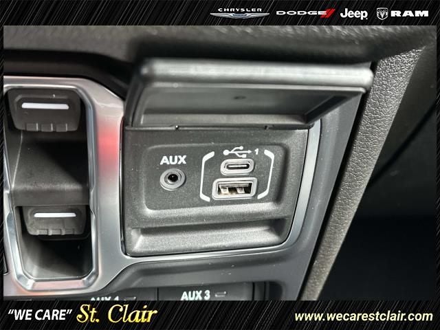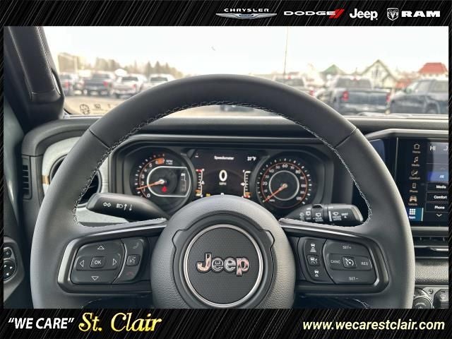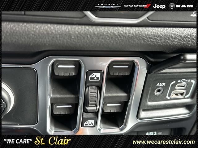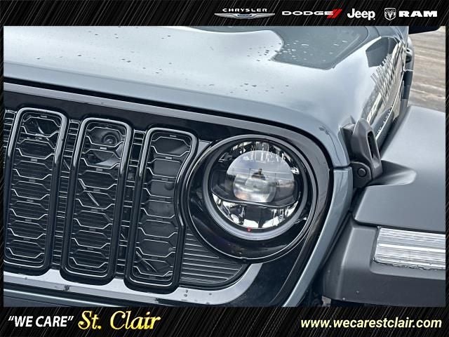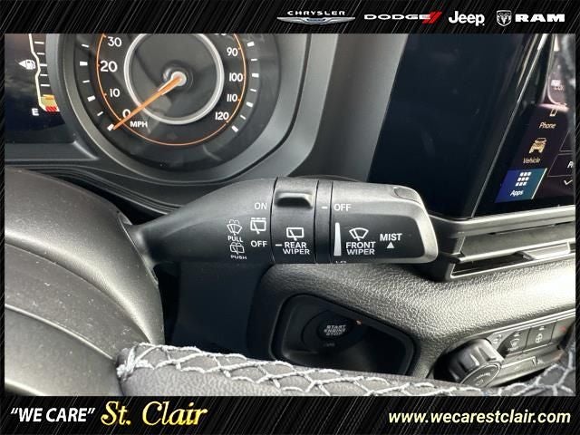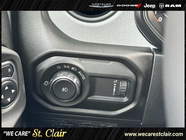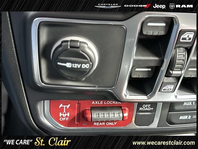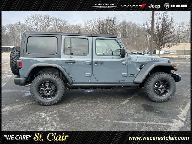 12.3 Touchscreen Display, 2-Door Passive Entry, Front Door Locks, 4-Wheel Disc Brakes, 4-Wheel Drive Swing Gate Decal, 4G LTE Wi-Fi Hot Spot, 7 and 4 Pin Wiring Harness, 8 Speakers, ABS brakes, Advanced Brake Assist, Air Conditioning, Air Conditioning with Auto Temp Control, Air Filtering, AM/FM radio: SiriusXM with 360L, Apple CarPlay, Apple CarPlay/Android Auto, Automatic Headlamps, Aux Battery, Auxiliary Switches, Black 3-Piece Hard Top, Black Grille with Gloss Black Rings, Brake assist, Class II Receiver Hitch, Cluster 7.0 TFT Color Display, Compass, Connectivity - US/Canada, Convenience Group, Conventional Differential Front Axle, Corning Gorilla Glass, Dana M210 Wide HD Tube Front Axle, Dana M220 Wide Rear Axle, Daytime Running Lamps LED Accents, Deep Tint Sunscreen Windows, Delay-off headlights, Driver door bin, Driver vanity mirror, Dual front impact airbags, Dual front side impact airbags, E-Locker Rear Axle, Electronic Stability Control, Emergency/Assistance Call, Enhanced Adaptive Cruise Control, For More Info, Call 800-643-2112, Freedom Panel Storage Bag, Front anti-roll bar, Front Bucket Seats, Front Center Armrest w/Storage, Front fog lights, Front LED Fog Lamps, Front reading lights, Full Speed Forward Collision Warning Plus, Google Android Auto, Heated Front Seats, Heated Steering Wheel, Illuminated entry, Injection Molded Black Rear Bumper, Integrated Center Stack Radio, Integrated roll-over protection, LED Premium Reflector Headlamps, Low tire pressure warning, Manufacture Statement of Origin, Mold in Color Bumper with Gloss Black, Molded in Color Rubicon Highline Flare, MOPAR All-Weather Floor Mats, Myflexcare Service Plan, No Soft Top, Non-Lock Fuel Cap Without Discriminator, Normal Duty Suspension, Occupant sensing airbag, Off-Road Plus Mode, Outside temperature display, Overhead airbag, Panic alarm, ParkView Rear Back-Up Camera, Passenger door bin, Passenger vanity mirror, Power Heated Mirrors, Power steering, Power windows, Premium Wrapped Steering Wheel, Quick Order Package 22W Willys, Radio data system, Radio: Uconnect 5 with 12.3 Display, Rear anti-roll bar, Rear reading lights, Rear Window Defroster, Rear Window Wiper/Washer, Remote keyless entry, Security Alarm, SiriusXM Radio Service, SiriusXM with 360L, Speed control, Split folding rear seat, Steering wheel mounted audio controls, Stop-Start Dual Battery System, Sun Visors with Illuminated Vanity Mirrors, Tachometer, Telescoping steering wheel, Tilt steering wheel, Traction control, Trip computer, Universal Garage Door Opener, Variably intermittent wipers, Wheels: 17 x 7.5 Black Steel Styled, Wheels: 17 x 7.5 Painted Black, Willy's Suspension, Willys Hood Decal.