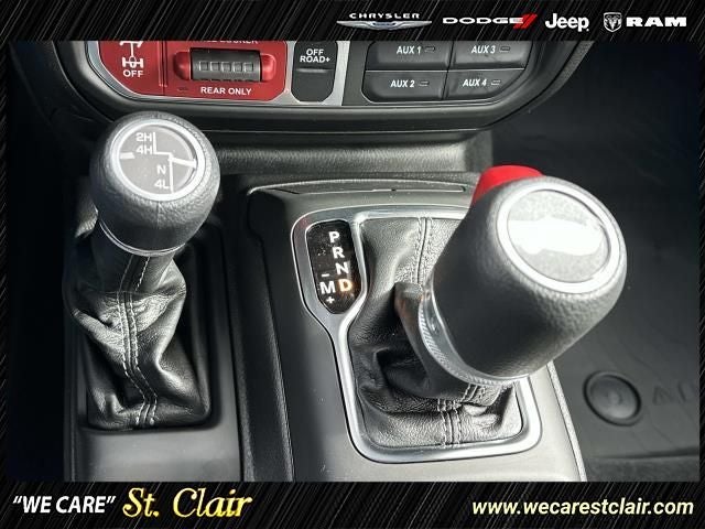 12.3 Touchscreen Display, 2-Door Passive Entry, Front Door Locks, 4-Wheel Disc Brakes, 4-Wheel Drive Swing Gate Decal, 4G LTE Wi-Fi Hot Spot, 7 and 4 Pin Wiring Harness, 8 Speakers, ABS brakes, Advanced Brake Assist, Air Conditioning, Air Conditioning with Auto Temp Control, Air Filtering, AM/FM radio: SiriusXM with 360L, Apple CarPlay, Apple CarPlay/Android Auto, Automatic Headlamps, Aux Battery, Auxiliary Switches, Black 3-Piece Hard Top, Black Grille with Gloss Black Rings, Brake assist, Class II Receiver Hitch, Cluster 7.0 TFT Color Display, Compass, Connectivity - US/Canada, Convenience Group, Conventional Differential Front Axle, Corning Gorilla Glass, Dana M210 Wide HD Tube Front Axle, Dana M220 Wide Rear Axle, Daytime Running Lamps LED Accents, Deep Tint Sunscreen Windows, Delay-off headlights, Driver door bin, Driver vanity mirror, Dual front impact airbags, Dual front side impact airbags, E-Locker Rear Axle, Electronic Stability Control, Emergency/Assistance Call, Enhanced Adaptive Cruise Control, For More Info, Call 800-643-2112, Freedom Panel Storage Bag, Front anti-roll bar, Front Bucket Seats, Front Center Armrest w/Storage, Front fog lights, Front LED Fog Lamps, Front reading lights, Full Speed Forward Collision Warning Plus, Google Android Auto, Heated Front Seats, Heated Steering Wheel, Illuminated entry, Injection Molded Black Rear Bumper, Integrated Center Stack Radio, Integrated roll-over protection, LED Premium Reflector Headlamps, Low tire pressure warning, Manufacture Statement of Origin, Mold in Color Bumper with Gloss Black, Molded in Color Rubicon Highline Flare, MOPAR All-Weather Floor Mats, Myflexcare Service Plan, No Soft Top, Non-Lock Fuel Cap Without Discriminator, Normal Duty Suspension, Occupant sensing airbag, Off-Road Plus Mode, Outside temperature display, Overhead airbag, Panic alarm, ParkView Rear Back-Up Camera, Passenger door bin, Passenger vanity mirror, Power Heated Mirrors, Power steering, Power windows, Premium Wrapped Steering Wheel, Quick Order Package 22W Willys, Radio data system, Radio: Uconnect 5 with 12.3 Display, Rear anti-roll bar, Rear reading lights, Rear Window Defroster, Rear Window Wiper/Washer, Remote keyless entry, Security Alarm, SiriusXM Radio Service, SiriusXM with 360L, Speed control, Split folding rear seat, Steering wheel mounted audio controls, Stop-Start Dual Battery System, Sun Visors with Illuminated Vanity Mirrors, Tachometer, Telescoping steering wheel, Tilt steering wheel, Traction control, Trip computer, Universal Garage Door Opener, Variably intermittent wipers, Wheels: 17 x 7.5 Black Steel Styled, Wheels: 17 x 7.5 Painted Black, Willy's Suspension, Willys Hood Decal.