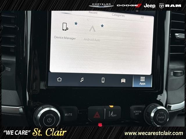 115V Auxiliary Power Outlet, 2nd Row in Floor Storage Bins, 3 Rear Seat Head Restraints, 4 Way Front Headrests, 4-Wheel Disc Brakes, 400W Inverter, 48V Belt Starter Generator, 4G LTE Wi-Fi Hot Spot, 6 Speakers, ABS brakes, Air Conditioning, Alloy wheels, AM/FM radio, Apple CarPlay, Apple CarPlay/Android Auto, Auto High-beam Headlights, Auto Power-Folding Mirrors, Auto-Dimming Exterior Driver Mirror, Auto-Dimming Rear-View Mirror, Big Horn Level 1 Equipment Group, Black Exterior Mirrors, Black Premium Power Mirrors, Body Color Fender Flares, Brake assist, Bucket Seats, Bumpers: chrome, Center Console Parts Module, Cloth Bucket Seats, Compass, Connectivity - US/Canada, Convex Wide-Angle Exterior Mirror Insert, Delay-off headlights, Deluxe Cloth Bucket Seats, Driver door bin, Dual front impact airbags, Dual front side impact airbags, Electronic Stability Control, Exterior Mirrors Courtesy Lamps, Exterior Mirrors with Heating Element, Exterior Mirrors with Supplemental Signals, Front anti-roll bar, Front Bucket Seats, Front Center Armrest w/Storage, Front fog lights, Front reading lights, Front Seat Back Map Pockets, Front wheel independent suspension, Full Length Floor Console, Fully automatic headlights, Global Telematics Box Module, Glove Box Lamp, Google Android Auto, GPS Antenna Input, Heated door mirrors, Heated Front Seats, Heated Steering Wheel, Illuminated entry, Integrated Center Stack Radio, Integrated Voice Command with Bluetooth®, Leather Wrapped Steering Wheel, Low tire pressure warning, Manual Adjust 4-Way Driver Seat, Manual Adjust 4-Way Front Passenger Seat, Manual Folding Exterior Mirrors, Manufacturer's Statement of Origin, MyFlexCare Service Plan, Occupant sensing airbag, Outside temperature display, Overhead airbag, Overhead console, Panic alarm, ParkView Rear Back-Up Camera, Passenger door bin, Passenger vanity mirror, Power 2-Way Driver Lumbar Adjust, Power Adjust 8-Way Driver Seat, Power Adjustable Pedals, Power door mirrors, Power steering, Power windows, Quick Order Package 23Z Big Horn, Radio data system, Radio: Uconnect 5 W with 8.4 Display, RAM Grille Badge - Chrome, Rear 60/40 Folding Seat, Rear anti-roll bar, Rear Center Armrest, Rear Dome with on/Off Switch Lamp, Rear Power Sliding Window, Rear step bumper, Rear Window Defroster, Remote keyless entry, SiriusXM Radio Service, SiriusXM Satellite Radio, Speed control, Steering Wheel Mounted Audio Controls, Sun Visors with Illuminated Vanity Mirrors, Supplier Part Tracking (J-1), Tachometer, Telescoping steering wheel, Tilt steering wheel, Traction control, Trip computer, Universal Garage Door Opener, USB Host Flip, Variably intermittent wipers, Voltmeter, Wheels: 18 x 8 Cast-Aluminum Painted.
