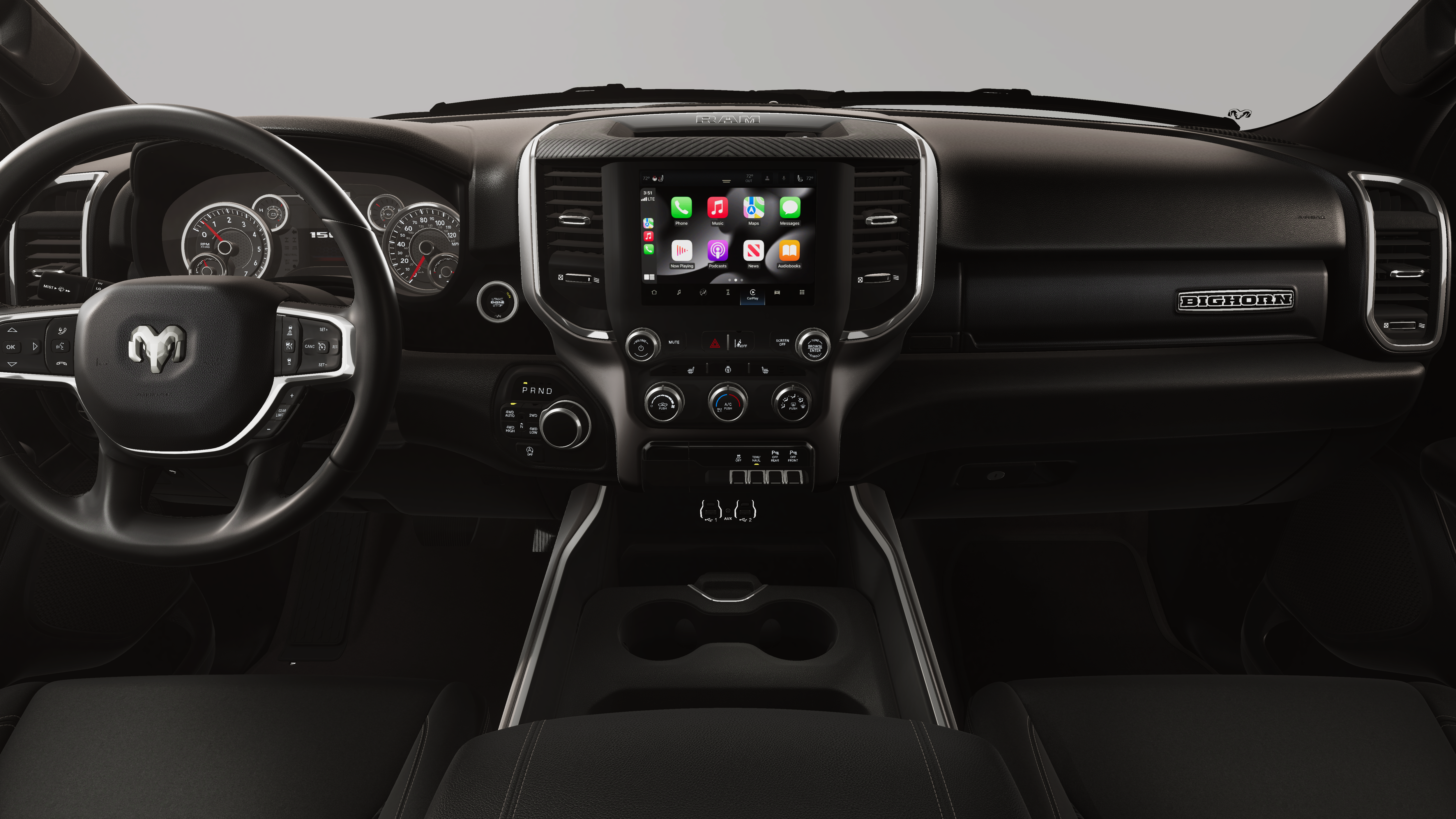 3 Rear Seat Head Restraints, 3.21 Rear Axle Ratio, 4 Way Front Headrests, 4-Wheel Disc Brakes, 48V Belt Starter Generator, 4G LTE Wi-Fi Hot Spot, 6 Speakers, ABS brakes, Air Conditioning, Alloy wheels, AM/FM radio, Apple CarPlay, Apple CarPlay/Android Auto, Auto High-beam Headlights, Black Exterior Mirrors, Brake assist, Bucket Seats, Bumpers: chrome, Center Console Parts Module, Cloth Bucket Seats, Compass, Connectivity - US/Canada, Convex Wide-Angle Exterior Mirror Insert, Delay-off headlights, Driver door bin, Dual front impact airbags, Dual front side impact airbags, Electronic Stability Control, Exterior Mirrors with Heating Element, Front anti-roll bar, Front Bucket Seats, Front Center Armrest w/Storage, Front fog lights, Front reading lights, Front wheel independent suspension, Full Length Floor Console, Fully automatic headlights, Global Telematics Box Module, Google Android Auto, GPS Antenna Input, Heated door mirrors, Illuminated entry, Integrated Center Stack Radio, Integrated Voice Command with Bluetooth®, Low tire pressure warning, Manual Adjust 4-Way Driver Seat, Manual Adjust 4-Way Front Passenger Seat, Manual Folding Exterior Mirrors, Occupant sensing airbag, Outside temperature display, Overhead airbag, Overhead console, Panic alarm, ParkView Rear Back-Up Camera, Passenger door bin, Passenger vanity mirror, Power door mirrors, Power steering, Power windows, Radio data system, Radio: Uconnect 5 W with 8.4 Display, RAM Grille Badge - Chrome, Rear anti-roll bar, Rear step bumper, Remote keyless entry, Speed control, Supplier Part Tracking (J-1), Tachometer, Telescoping steering wheel, Tilt steering wheel, Traction control, Trip computer, USB Host Flip, Variably intermittent wipers, Voltmeter.