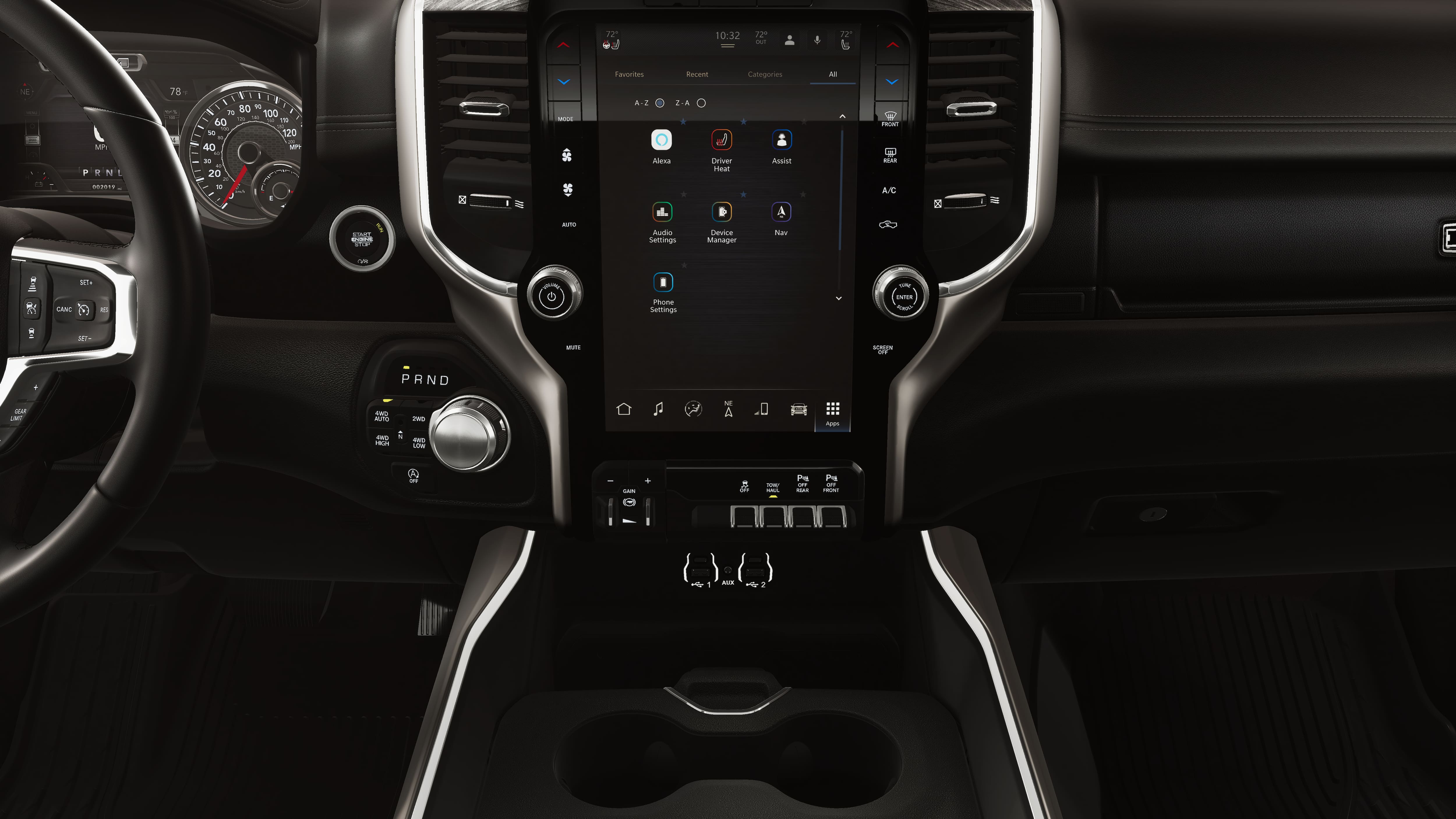 10 Speakers, 3.55 Rear Axle Ratio, 4-Wheel Disc Brakes, 4G LTE Wi-Fi Hot Spot, ABS brakes, Active Noise Control System, Adjustable pedals, Air Conditioning, Alloy wheels, AM/FM radio: SiriusXM with 360L, Apple CarPlay/Android Auto, Audio memory, Auto High-beam Headlights, Auto Power-Folding Mirrors, Auto-dimming door mirrors, Auto-Dimming Exterior Driver Mirror, Auto-dimming Rear-View mirror, Automatic temperature control, Brake assist, Bumpers: chrome, Chrome Exterior Mirrors, Compass, Connected Travel and Traffic Services, Connectivity - US/Canada, Convex Wide-Angle Exterior Mirror Insert, Delay-off headlights, Driver door bin, Driver vanity mirror, Dual front impact airbags, Dual front side impact airbags, Electronic Stability Control, Exterior Mirrors Courtesy Lamps, Exterior Mirrors with Heating Element, Exterior Mirrors with Memory, Exterior Mirrors with Supplemental Signals, Front anti-roll bar, Front Bucket Seats, Front Center Armrest w/Storage, Front dual zone A/C, Front fog lights, Front reading lights, Front wheel independent suspension, Fully automatic headlights, Garage door transmitter, GPS Navigation, Heated door mirrors, Heated front seats, Heated rear seats, Heated steering wheel, Illuminated entry, Integrated Center Stack Radio, Integrated Voice Command with Bluetooth®, Leather steering wheel, Leather Trimmed Bucket Seats, Low tire pressure warning, Memory seat, Navigation System, Occupant sensing airbag, Off-Road Information Pages, Outside temperature display, Overhead airbag, Overhead console, Panic alarm, ParkView Rear Back-Up Camera, Passenger door bin, Passenger vanity mirror, Pedal memory, Power door mirrors, Power driver seat, Power passenger seat, Power steering, Power windows, Radio data system, Radio: Uconnect 5 Navigation with 12.0 Display, RAM Grille Badge - Chrome, Rear anti-roll bar, Rear reading lights, Rear seat center armrest, Rear step bumper, Remote keyless entry, Security system, SiriusXM Radio Service, SiriusXM with 360L, Speed control, Split folding rear seat, Steering wheel mounted audio controls, Tachometer, Telescoping steering wheel, Tilt steering wheel, Traction control, Trip computer, Turn signal indicator mirrors, USB Host Flip, Variably intermittent wipers, Ventilated front seats, Voltmeter, Wheels: 20 x 9 Premium Paint/Polish.