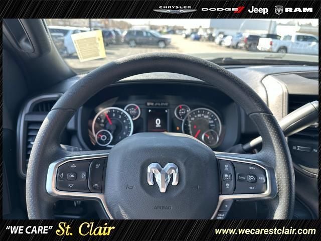 115-Volt Auxiliary Front Power Outlet, 12 Touchscreen Display, 2 Way Rear Headrest Seat, 4 Way Front Headrests, 4-Wheel Disc Brakes, 40/20/40 Split Bench Seat, 400W Inverter, 4G LTE Wi-Fi Hot Spot, 6 Speakers, ABS brakes, Air Conditioning, Air Conditioning ATC with Dual Zone Control, Alexa Built-in, AM/FM radio: SiriusXM, Anti-Spin Differential Rear Axle, Apple CarPlay, Apple CarPlay/Android Auto, Auto Power-Folding Mirrors, Auto-Dimming Rear-View Mirror, Black Exterior Mirrors, Black Wheel Center Hub, Body Color Grille-Surround, Brake assist, Carpet Floor Covering, Clearance Lamps, Cloth 40/20/40 Bench Seat, Compass, Connected Travel and Traffic Services, Connectivity - US/Canada, Delay-off headlights, Disassociated Touchscreen Display, Driver door bin, Dual front impact airbags, Dual front side impact airbags, Electronic Stability Control, Emergency Vehicle Alert System (EVAS), Exterior 115V AC Outlet, Exterior Mirrors Courtesy Lamps, Exterior Mirrors with Heating Element, Exterior Mirrors with Supplemental Signals, For Details, Visit DriveUconnect.com, For More Info, Call 800-643-2112, Forward and Reverse Utility Lights, Front and Rear Floor Mats, Front anti-roll bar, Front Armrest with Cupholders, Front Center Armrest w/Storage, Front fog lights, Front reading lights, Fully automatic headlights, Global Telematics Box Module, Google Android Auto, GPS Antenna Input, GPS Navigation, HD Radio, Illuminated entry, Integrated Voice Command with Bluetooth®, Low tire pressure warning, Manual Adjust 4-Way Driver Seat, Manual Adjust 4-Way Front Passenger Seat, Manual Folding Exterior Mirrors, Manual Telescoping Mirrors, Manufacturer's Statement of Origin, Mirror Running Lights, Mopar Black Tubular Side Steps, MyFlexCare Service Plan, Occupant sensing airbag, Off-Road Info Pages, Outside temperature display, Overhead airbag, Overhead console, Painted Front Bumper, Painted Rear Bumper, Panic alarm, ParkSense Front/Rear Park Assist System, ParkView Rear Back-Up Camera, Passenger door bin, Passenger vanity mirror, Power Adjust Mirrors, Power Heated Folding Telescopic Mirrors, Power steering, Power Telescoping Mirrors, Power windows, Power-Adjustable Convex Aux Mirrors, Quick Order Package 2UC Black Express, Radio data system, Radio: Uconnect 5 Navigation with 12.0 Display, Radio: Uconnect 5 with 8.4 Display, Rear anti-roll bar, Rear Backup Alarm, Rear Folding Seat, Rear Power Sliding Window, Rear step bumper, Rear Wheelhouse Liners, Rear window defroster, Remote keyless entry, Remote USB Port - Charge Only, Selectable Tire Fill Alert, SiriusXM Radio Service, SiriusXM with 360L, Speed control, Sport Performance Hood, Storage Tray, Tachometer, Tilt steering wheel, Tinted Acoustic Windshield Glass, Traction control, Tradesman Level 1 Equipment Group, Trailer Tow Pages, Variably intermittent wipers, Voltmeter, Wheels: 17 x 7.5 Black Steel Styled, Wheels: 20 x 8.0 Black Painted Aluminum.