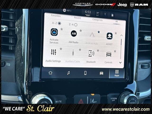 115V Auxiliary Power Outlet, 2nd Row in Floor Storage Bins, 3 Rear Seat Head Restraints, 4 Way Front Headrests, 4-Wheel Disc Brakes, 400W Inverter, 48V Belt Starter Generator, 4G LTE Wi-Fi Hot Spot, 6 Speakers, ABS brakes, Air Conditioning, Alloy wheels, AM/FM radio, Apple CarPlay, Apple CarPlay/Android Auto, Auto High-beam Headlights, Auto Power-Folding Mirrors, Auto-Dimming Exterior Driver Mirror, Auto-Dimming Rear-View Mirror, Big Horn Level 1 Equipment Group, Black Exterior Mirrors, Black Premium Power Mirrors, Body Color Fender Flares, Brake assist, Bucket Seats, Bumpers: chrome, Center Console Parts Module, Cloth Bucket Seats, Compass, Connectivity - US/Canada, Convex Wide-Angle Exterior Mirror Insert, Delay-off headlights, Deluxe Cloth Bucket Seats, Driver door bin, Dual front impact airbags, Dual front side impact airbags, Electronic Stability Control, Exterior Mirrors Courtesy Lamps, Exterior Mirrors with Heating Element, Exterior Mirrors with Supplemental Signals, Front anti-roll bar, Front Bucket Seats, Front Center Armrest w/Storage, Front fog lights, Front reading lights, Front Seat Back Map Pockets, Front wheel independent suspension, Full Length Floor Console, Fully automatic headlights, Global Telematics Box Module, Glove Box Lamp, Google Android Auto, GPS Antenna Input, Heated door mirrors, Heated Front Seats, Heated Steering Wheel, Illuminated entry, Integrated Center Stack Radio, Integrated Voice Command with Bluetooth®, Leather Wrapped Steering Wheel, Low tire pressure warning, Manual Adjust 4-Way Driver Seat, Manual Adjust 4-Way Front Passenger Seat, Manual Folding Exterior Mirrors, Manufacturer's Statement of Origin, MyFlexCare Service Plan, Occupant sensing airbag, Outside temperature display, Overhead airbag, Overhead console, Panic alarm, ParkView Rear Back-Up Camera, Passenger door bin, Passenger vanity mirror, Power 2-Way Driver Lumbar Adjust, Power Adjust 8-Way Driver Seat, Power Adjustable Pedals, Power door mirrors, Power steering, Power windows, Quick Order Package 23Z Big Horn, Radio data system, Radio: Uconnect 5 W with 8.4 Display, RAM Grille Badge - Chrome, Rear 60/40 Folding Seat, Rear anti-roll bar, Rear Center Armrest, Rear Dome with on/Off Switch Lamp, Rear Power Sliding Window, Rear step bumper, Rear Window Defroster, Remote keyless entry, SiriusXM Radio Service, SiriusXM Satellite Radio, Speed control, Steering Wheel Mounted Audio Controls, Sun Visors with Illuminated Vanity Mirrors, Supplier Part Tracking (J-1), Tachometer, Telescoping steering wheel, Tilt steering wheel, Traction control, Trip computer, Universal Garage Door Opener, USB Host Flip, Variably intermittent wipers, Voltmeter, Wheels: 18 x 8 Cast-Aluminum Painted.