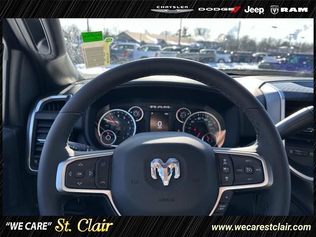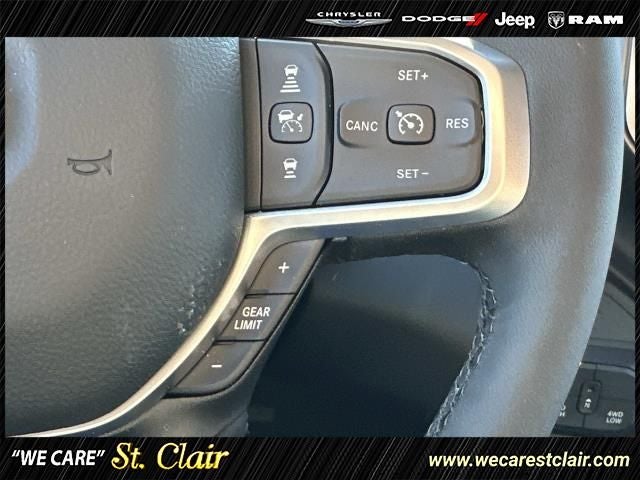 12 Touchscreen Display, 2 Way Rear Headrest Seat, 2nd Row in Floor Storage Bins, 4 Way Front Headrests, 4-Wheel Disc Brakes, 40/20/40 Split Bench Seat, 4G LTE Wi-Fi Hot Spot, 6 Speakers, 9 Alpine Speakers with Subwoofer, ABS brakes, Air Conditioning, Air Conditioning ATC with Dual Zone Control, Alexa Built-in, Alloy wheels, AM/FM radio: SiriusXM, Anti-Spin Differential Rear Axle, Apple CarPlay, Apple CarPlay/Android Auto, Auto Power-Folding Mirrors, Auto-Dimming Rear-View Mirror, Big Horn Level 1 Plus Equipment Group, Black Exterior Mirrors, Black Exterior Truck Badging, Black Interior Accents, Black Wheel Center Hub, Body Color Grille-Surround, Brake assist, Bumpers: chrome, Center Hub, Clearance Lamps, Cloth 40/20/40 Bench Seat, Compass, Connected Travel and Traffic Services, Connectivity - US/Canada, Delay-off headlights, Disassociated Touchscreen Display, Driver door bin, Dual front impact airbags, Dual front side impact airbags, Dual Glove Boxes, Electronic Stability Control, Emergency Vehicle Alert System (EVAS), Exterior Mirrors Courtesy Lamps, Exterior Mirrors with Heating Element, Exterior Mirrors with Supplemental Signals, Foam Bottle Insert (door Trim Panel), Folding Flat Load Floor Storage, Footwell Courtesy Lamp, For Details, Visit DriveUconnect.com, For More Info, Call 800-643-2112, Forward and Reverse Utility Lights, Front anti-roll bar, Front Armrest with Cupholders, Front Center Armrest w/Storage, Front Center Seat Cushion Storage, Front fog lights, Front reading lights, Front Seat Back Map Pockets, Fully automatic headlights, Global Telematics Box Module, Gloss Black Nostrils/Mic Black Grille, Glove Box Lamp, Google Android Auto, GPS Antenna Input, GPS Navigation, HD Radio, Heated door mirrors, Heated Front Seats, Heated Seats and Wheel Group, Heated Steering Wheel, Illuminated entry, Integrated Voice Command with Bluetooth®, LED Bed Lighting, Locking Lower Glove Box, Low tire pressure warning, Luxury Steering Wheel, Manual Adjust 4-Way Driver Seat, Manual Adjust 4-Way Front Passenger Seat, Manufacturer's Statement of Origin, Mirror Running Lights, MOPAR Deployable Bed Step, MOPAR Front and Rear Rubber Floor Mats, MOPAR Spray in Bedliner, MyFlexCare Service Plan, Night Edition, Occupant sensing airbag, Off-Road Info Pages, Outside temperature display, Overhead airbag, Overhead console, Painted Front Bumper, Painted Rear Bumper, Panic alarm, ParkView Rear Back-Up Camera, Passenger door bin, Passenger vanity mirror, Power 2-Way Driver Lumbar Adjust, Power Adjust 8-Way Driver Seat, Power Adjust Mirrors, Power door mirrors, Power Heated Folding Telescopic Mirrors, Power steering, Power Telescoping Mirrors, Power windows, Power-Adjustable Convex Aux Mirrors, Premium Cloth 40/20/40 Bench Seat, Quick Order Package 2UZ Big Horn, Radio data system, Radio: Uconnect 5 Navigation with 12.0 Display, Radio: Uconnect 5 with 8.4 Display, Rear 60/40 Folding Seat, Rear anti-roll bar, Rear Backup Alarm, Rear Dome with on/Off Switch Lamp, Rear Folding Seat, Rear seat center armrest, Rear step bumper, Rear Wheelhouse Liners, Rear window defroster, Remote keyless entry, Remote Start System, Remote USB Port - Charge Only, Security system, Selectable Tire Fill Alert, SiriusXM Radio Service, SiriusXM with 360L, Speed control, Steering Wheel Mounted Audio Controls, Storage Tray, Tachometer, Tilt steering wheel, Traction control, Trailer Tow Pages, Trip computer, Turn signal indicator mirrors, Variably intermittent wipers, Voltmeter, Wheels: 18 x 8.0 Polished Aluminum, Wheels: 20 x 8.0 Black Painted Aluminum.