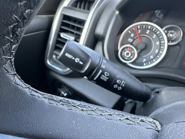 115V Auxiliary Power Outlet, 2nd Row In Floor Storage Bins, 3 Rear Seat Head Restraints, 4 Way Front Headrests, 4-Wheel Disc Brakes, 400W Inverter, 4G LTE Wi-Fi Hot Spot, 6 Speakers, ABS brakes, Air Conditioning, Alloy wheels, AM/FM radio, Apple CarPlay/Android Auto, Auto High-beam Headlights, Auto Power-Folding Mirrors, Auto-Dimming Exterior Driver Mirror, Auto-Dimming Rear-View Mirror, Big Horn Badge, Big Horn Level 1 Equipment Group, Black Exterior Mirrors, Black Premium Power Mirrors, Brake assist, Bumpers: chrome, Cloth Bench Seat, Compass, Connectivity - US/Canada, Convex Wide-Angle Exterior Mirror Insert, Delay-off headlights, Driver door bin, Dual front impact airbags, Dual front side impact airbags, Electronic Stability Control, Exterior Mirrors Courtesy Lamps, Exterior Mirrors w/Heating Element, Exterior Mirrors w/Supplemental Signals, Front anti-roll bar, Front Center Armrest w/Storage, Front fog lights, Front reading lights, Front Seat Back Map Pockets, Front wheel independent suspension, Fully automatic headlights, Glove Box Lamp, GPS Antenna Input, Heated door mirrors, Heated Front Seats, Heated Steering Wheel, Illuminated entry, Integrated Voice Command w/Bluetooth®, Leather Wrapped Steering Wheel, Low tire pressure warning, Manual Adjust 4-Way Front Passenger Seat, Manual Folding Exterior Mirrors, Manufacturer's Statement of Origin, Occupant sensing airbag, Outside temperature display, Overhead airbag, Overhead console, Panic alarm, ParkView Rear Back-Up Camera, Passenger door bin, Passenger vanity mirror, Power 2-Way Driver Lumbar Adjust, Power Adjust 8-Way Driver Seat, Power Adjustable Pedals, Power door mirrors, Power steering, Power windows, Quick Order Package 23Z Big Horn, Radio data system, Radio: Uconnect 5 W w/8.4 Display, RAM Grille Badge - Chrome, Rear 60/40 Folding Seat, Rear anti-roll bar, Rear Power Sliding Window, Rear seat center armrest, Rear step bumper, Rear Window Defroster, Remote keyless entry, Speed control, Split folding rear seat, Steering Wheel Mounted Audio Controls, Sun Visors w/Illuminated Vanity Mirrors, Supplier Part Tracking (J-1), Tachometer, Telescoping steering wheel, Tilt steering wheel, Traction control, Trip computer, Universal Garage Door Opener, USB Host Flip, Variably intermittent wipers, Voltmeter, Wheels: 18 x 8 Cast-Aluminum Painted.